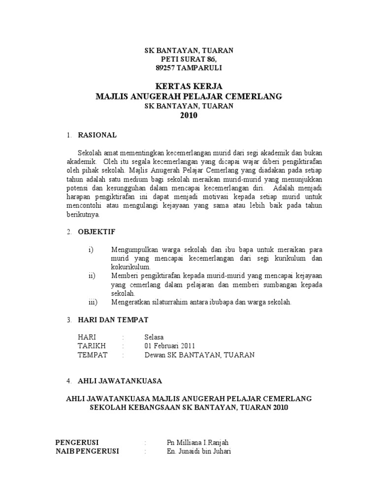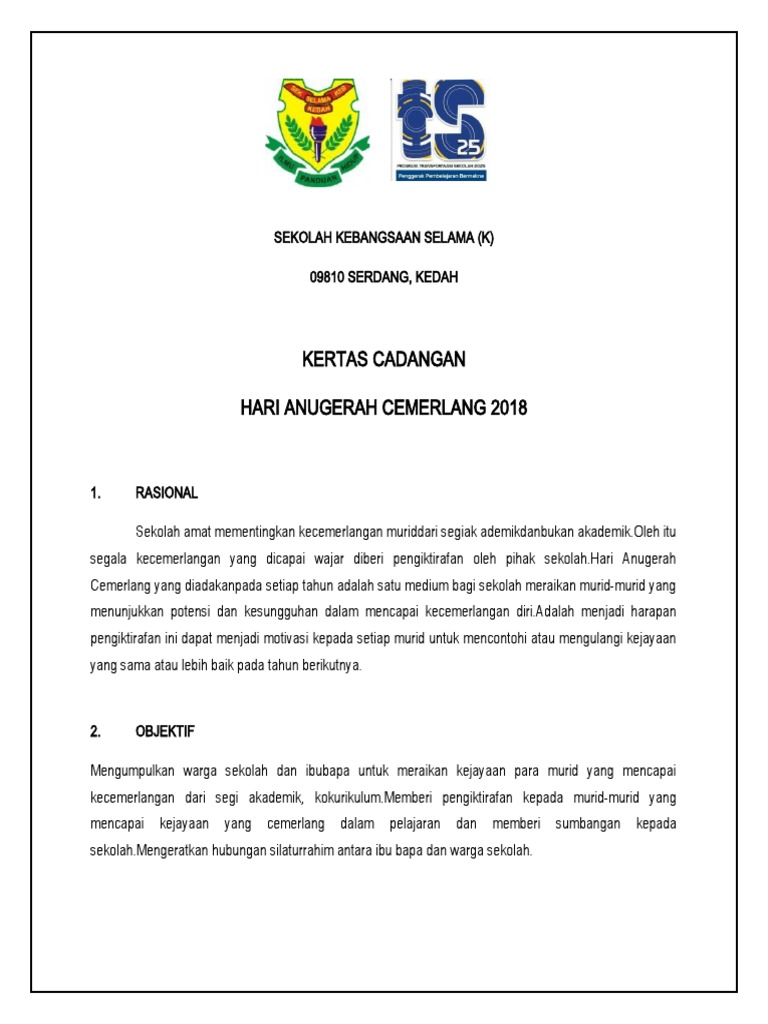 Contoh Kertas Kerja Hari Anugerah Cemerlang Sekolah Rendah